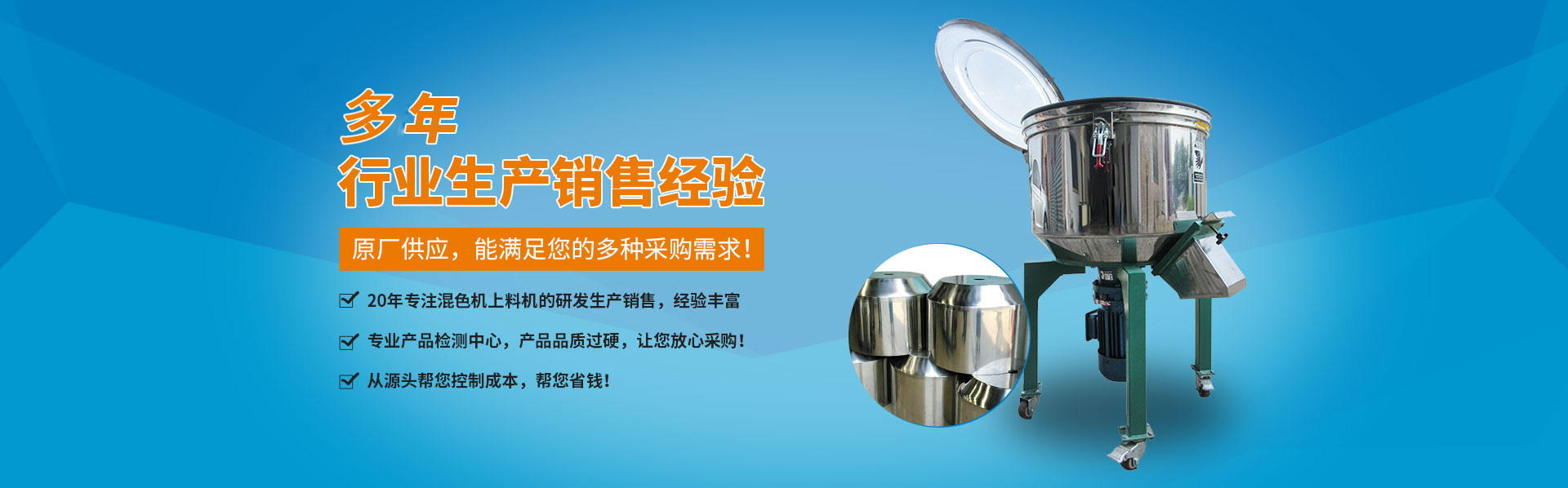 廣東紅寶機械科技有限公司專業生產混色機,干燥混色機,立式混色機,臥式混色機,塑料攪拌機、立式攪拌機、塑料混料機、不銹鋼攪拌機、螺旋上料機、彈簧上料機、粉體攪拌機、攪拌干燥機、臥式攪拌機、食品上料機、攪拌烘干機、塑料拌料機、塑料混合機、大型立式攪拌機等注塑機周邊設備。我司經過多年的努力和研究,在攪拌粉末料這方面有了重大的突破。引得了很多客戶的肯定,特別是在國內市場備受歡迎。公司可以免費提供機器試機和提供方案。